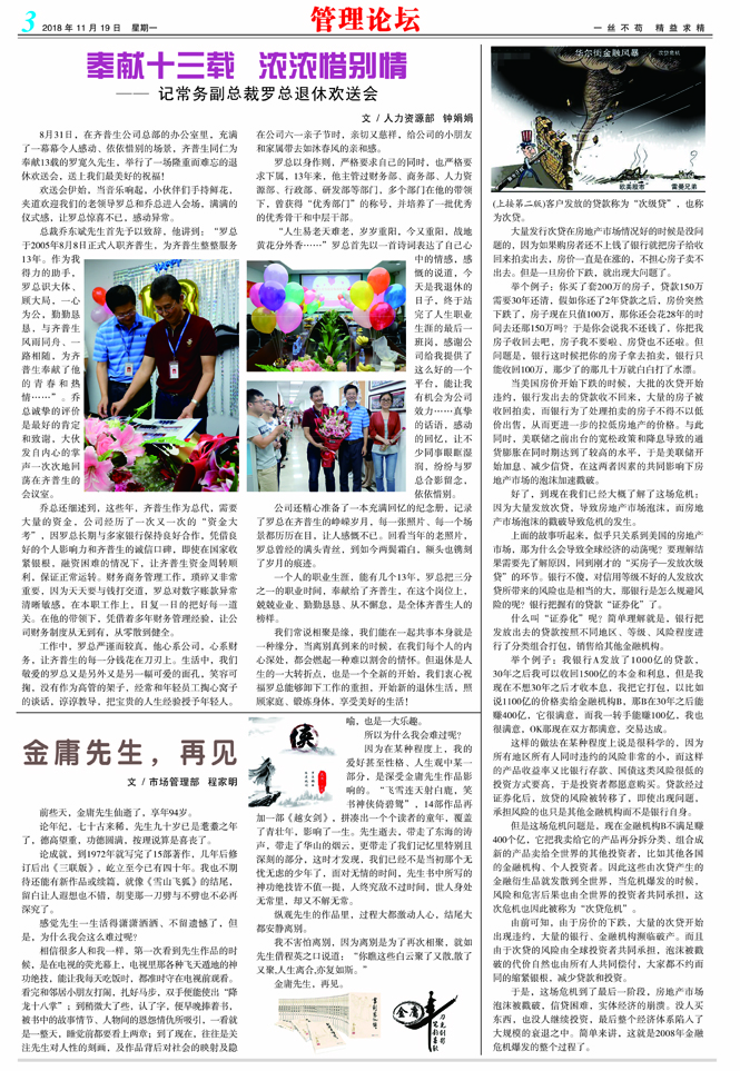 奉獻(xiàn)十三載 濃濃惜別情 ——記常務(wù)副總裁羅總退休歡送會(huì)